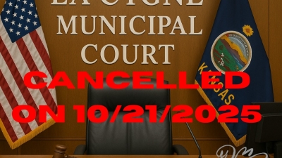 The City of La Cygne Municipal Court scheduled for Tuesday, October 21, 2025, at 6:00 PM has been cancelled.