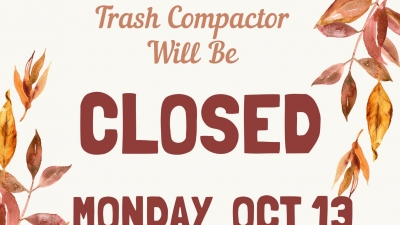 City Hall and the Trash Compactor will be closed on Monday, October 13, 2025 for Columbus Day / Indigenous people day.